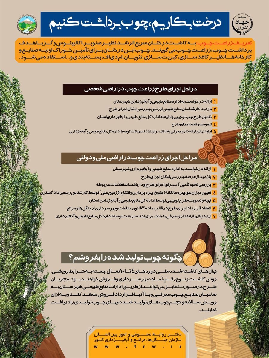 زراعت چوب (درخت بکاریم، چوب برداشت کنیم)زراعت چوب (درخت بکاریم، چوب برداشت کنیم)